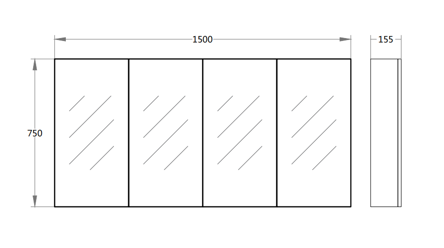 1500L*750 H *155Dmm PVC Slim shaving cabinet