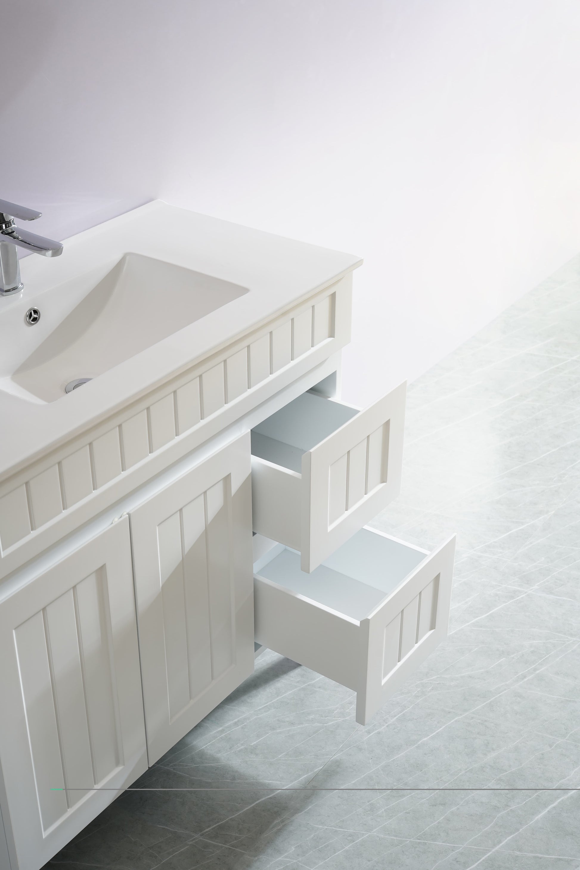 Experience the superior quality floor standing vanity, expertly crafted from fully waterproof PVC. Enjoy the tranquility of soft-closing undermount drawer runners, ensuring whisper-quiet and smooth operation. Combining style and functionality in one elegant package.