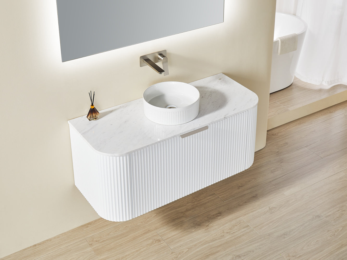 Ceto AVALON Wall Hung PVC Cabinet Matte White Curve Edge Size:1190*493*470mm