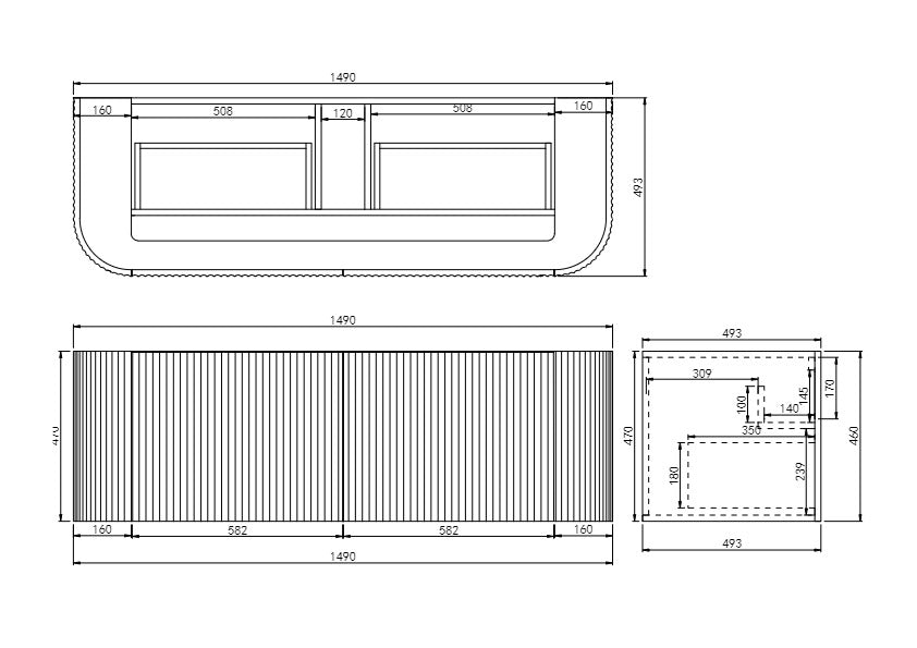 Ceto Avalon Wall Hung PVC Cabinet Matte Black Curve Edge Size:1490*493*470mm
