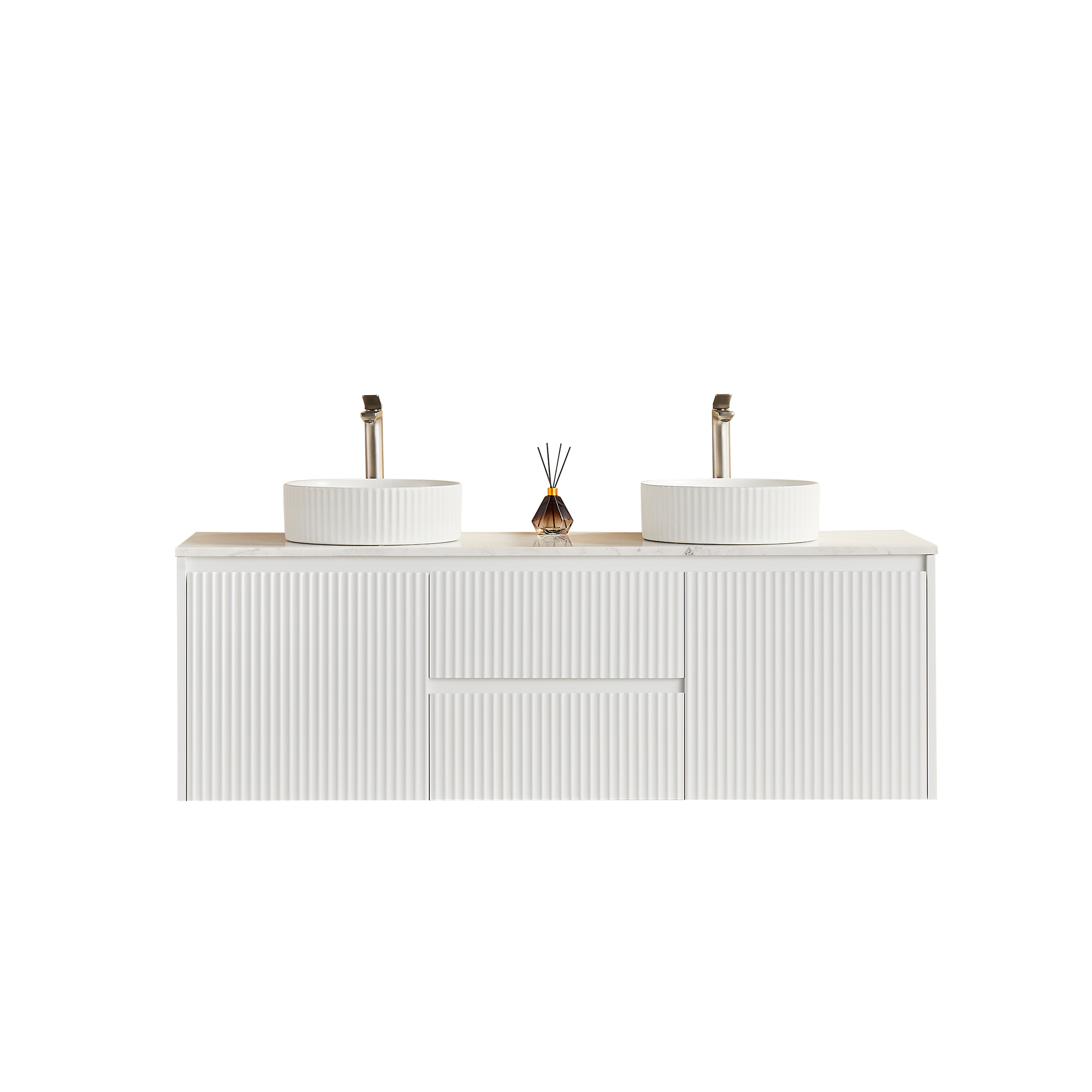 For those seeking a touch of luxury, the Brindabella collection offers premium moisture-resistant wall hung cabinetry with soft-closing and finger pull doors and drawers, providing convenient storage. Choose from two colors and pair it with your preferred ceramic basin for a bespoke addition to your bathroom.