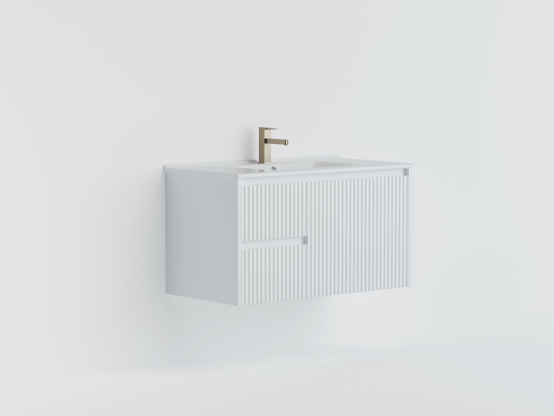 For those seeking a touch of luxury, the Brindabella collection offers premium moisture-resistant wall hung cabinetry with soft-closing and finger pull doors and drawers, providing convenient storage. Choose from two colors and pair it with your preferred ceramic basin for a bespoke addition to your bathroom.