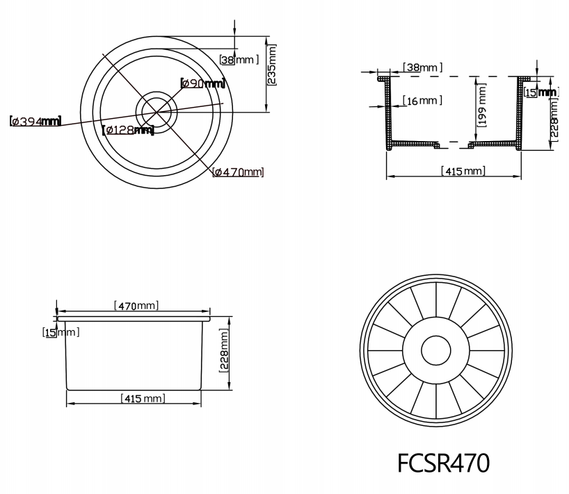 470mm X 228mm Gloss White Sink Camden FCSR470