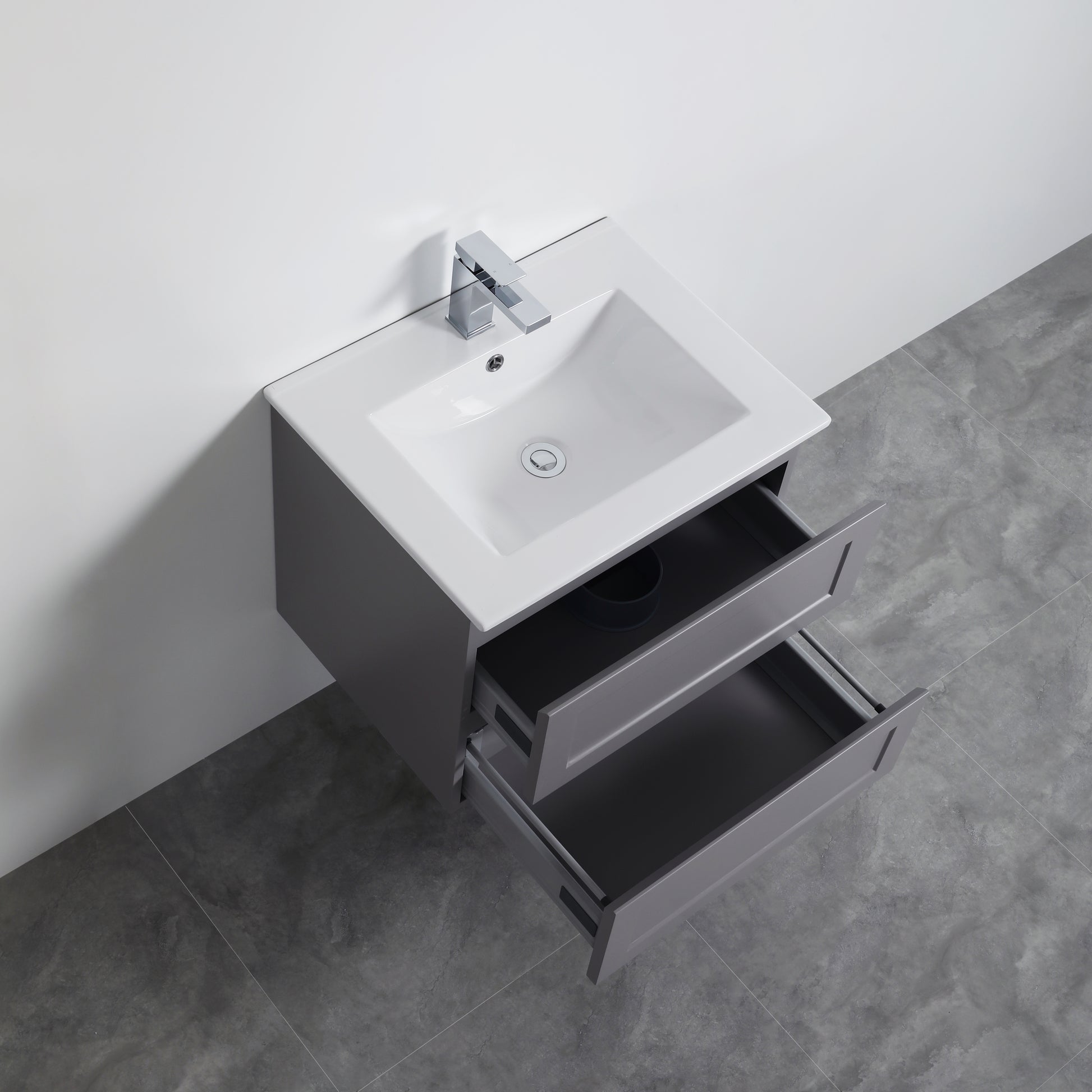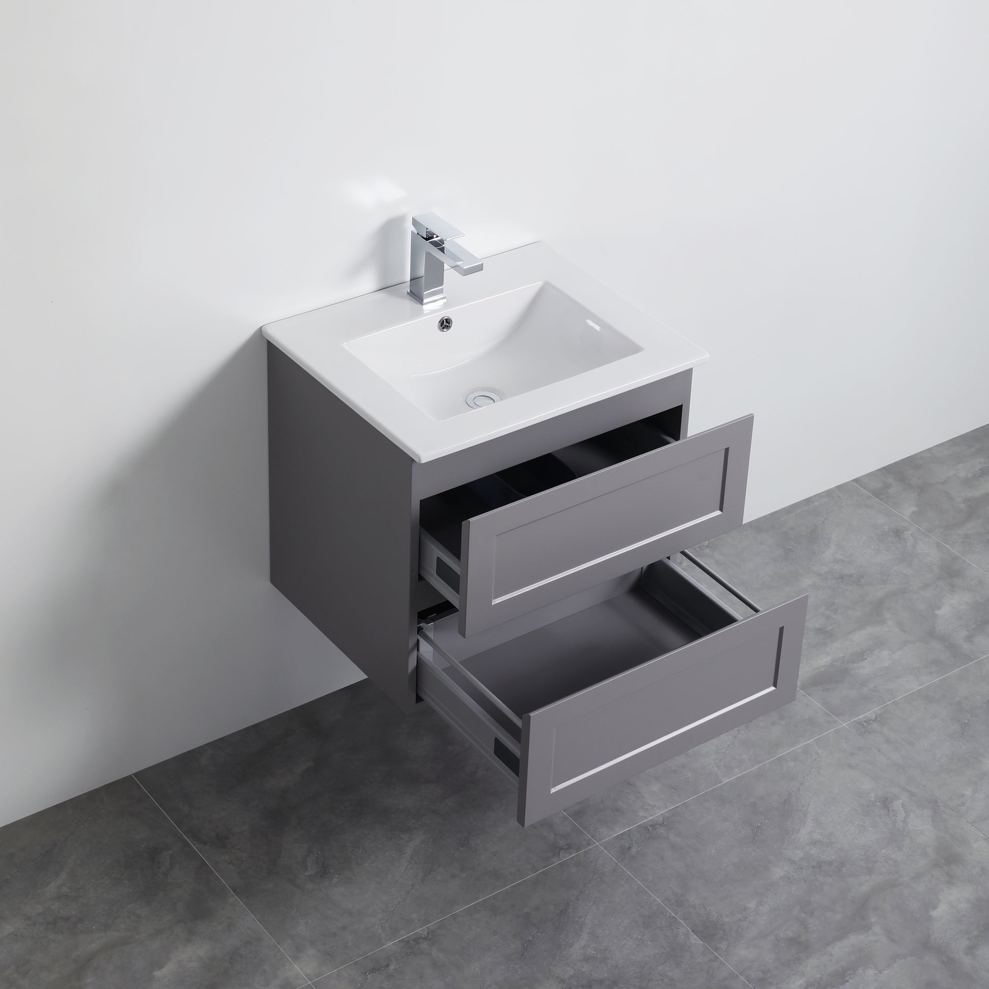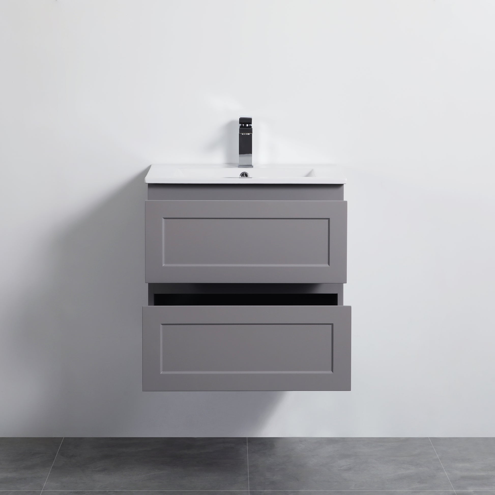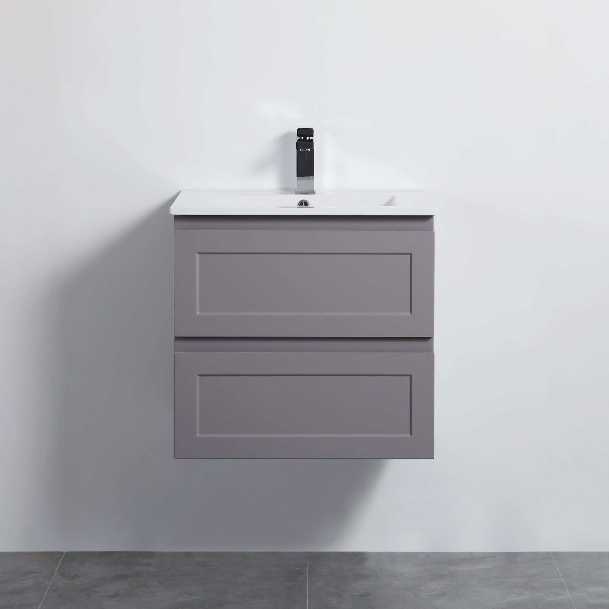 600mm Fremantle Wall Hung Vanity Double Drawers Matt Grey FMG600WH