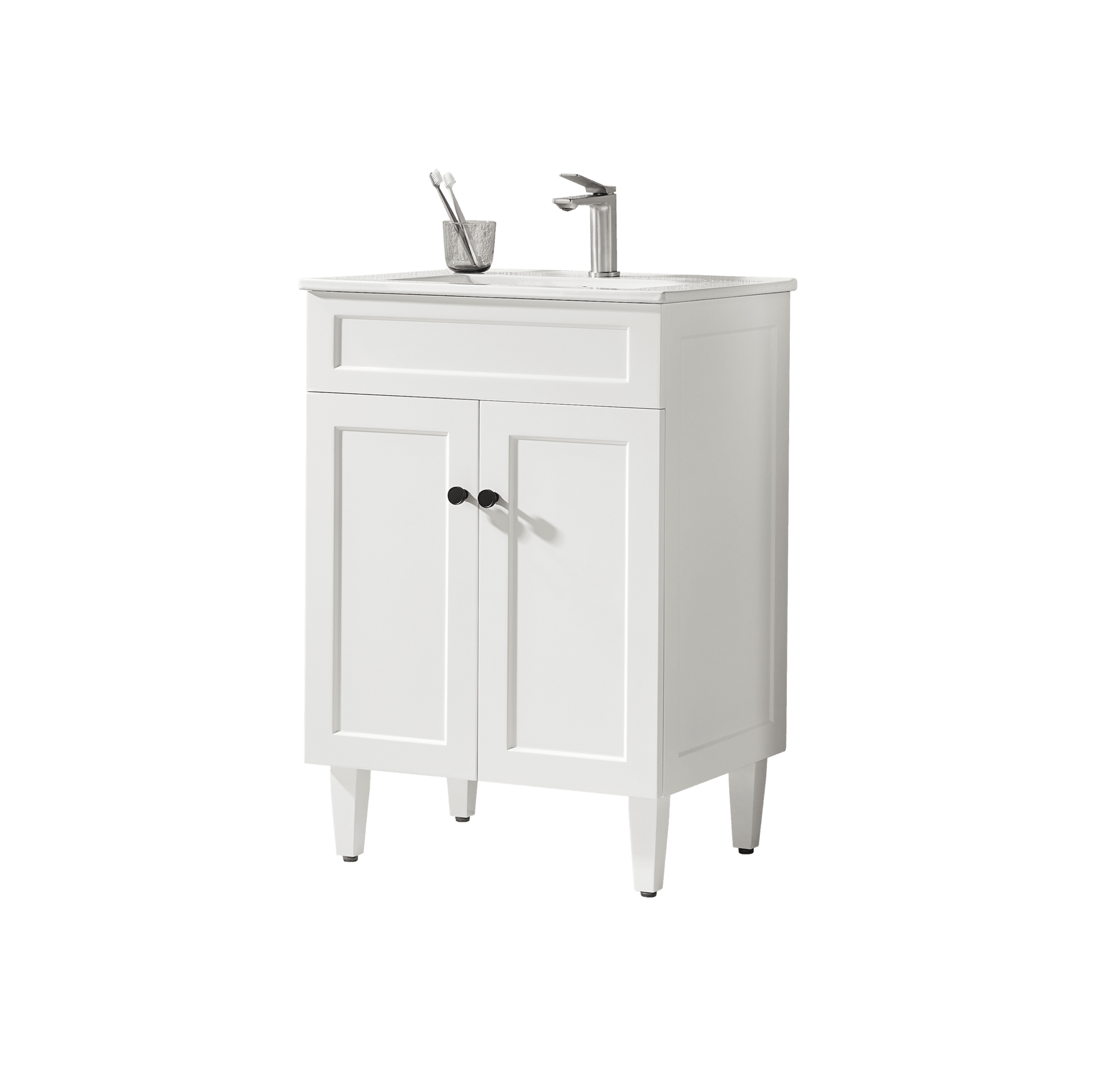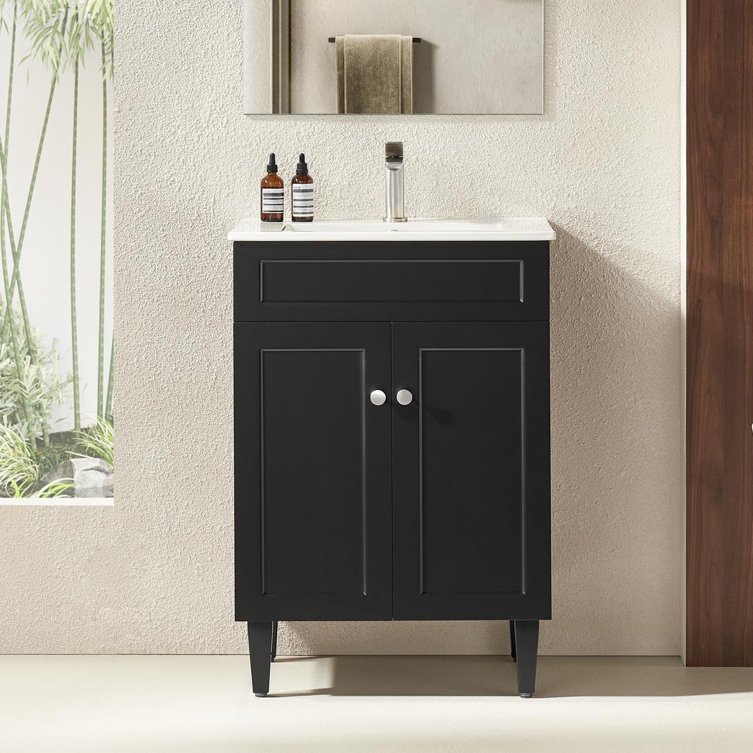 Introducing the Harrington Freestanding PVC Vanity, inspired by the timeless charm of Hamptons design. Available in matte white and matte black, it features a classic look with solid wood legs and customizable handles to perfectly match your bathroom’s color scheme.