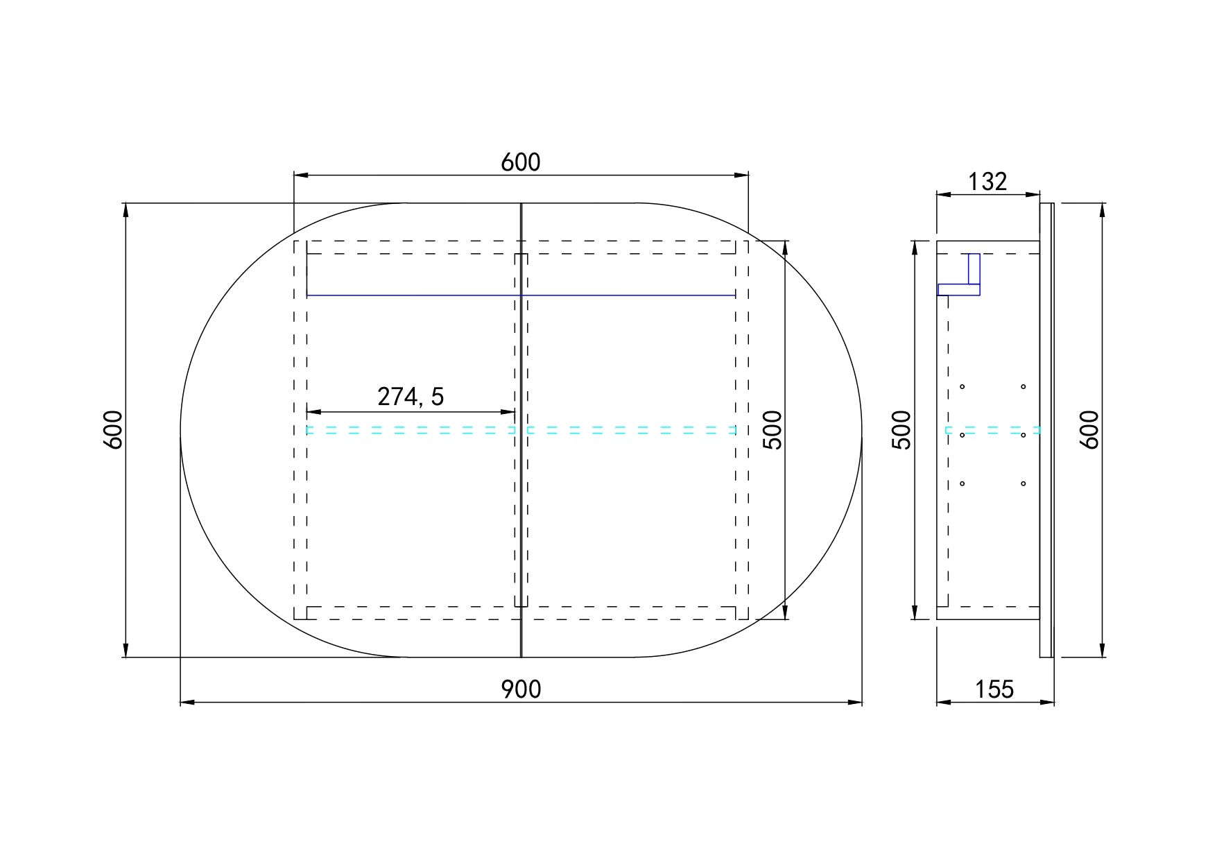 Olivia LED PVC Mirror Shaving Cabinet 900x600x155mm OPLSV9060MB/MW-LED