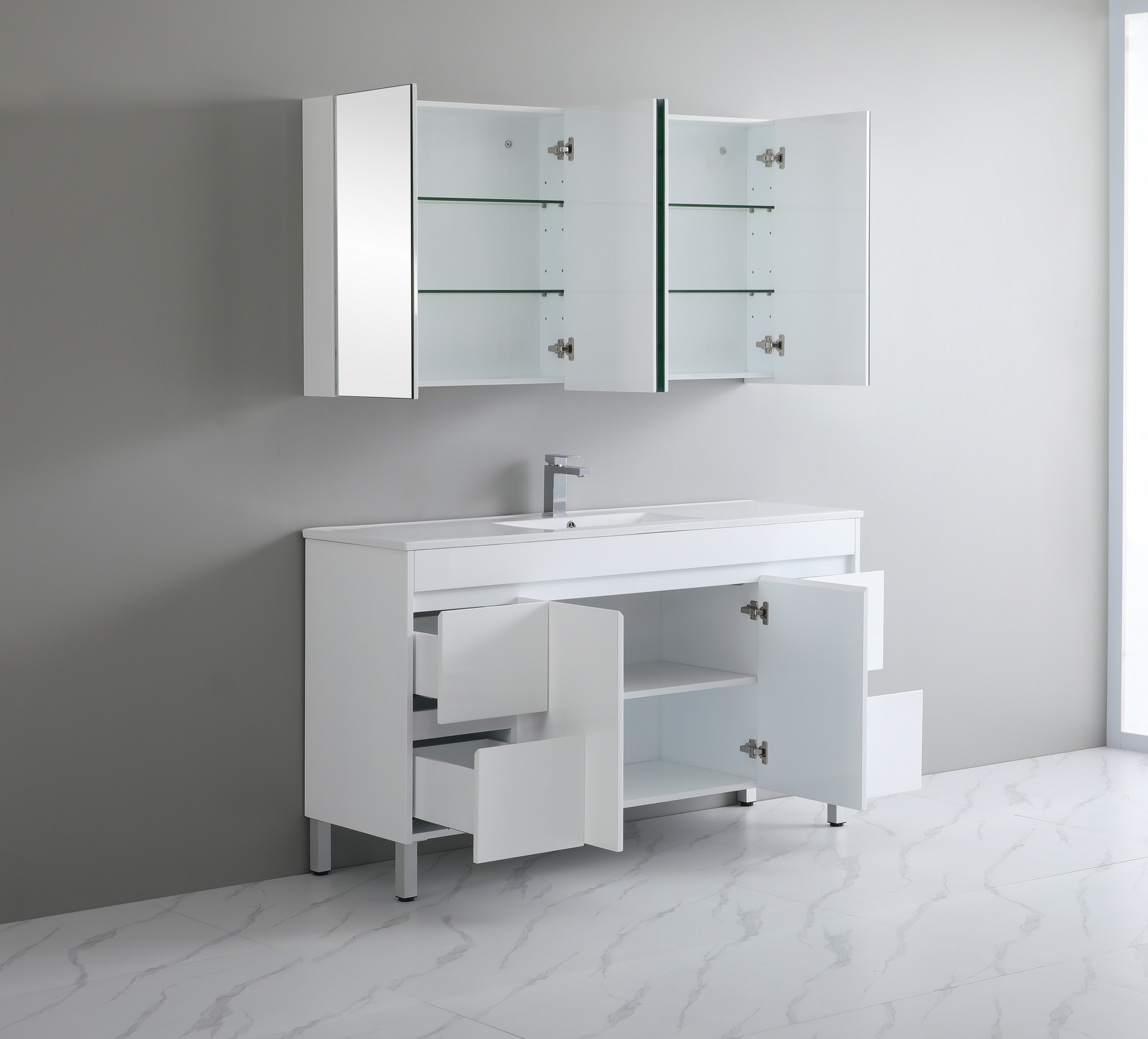 1500*460*880mm White Polyurethane PVC Standard Vanity Polar P154LG