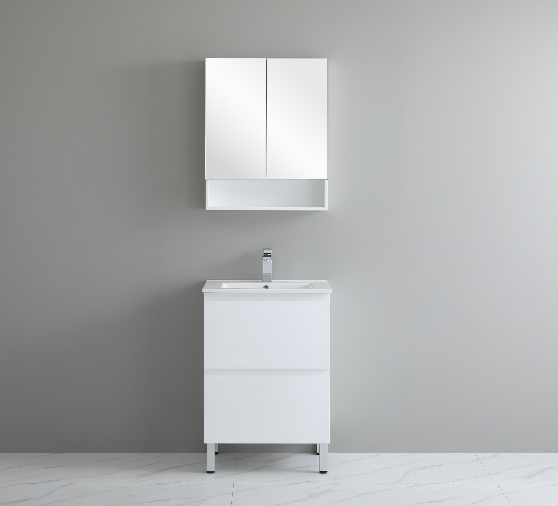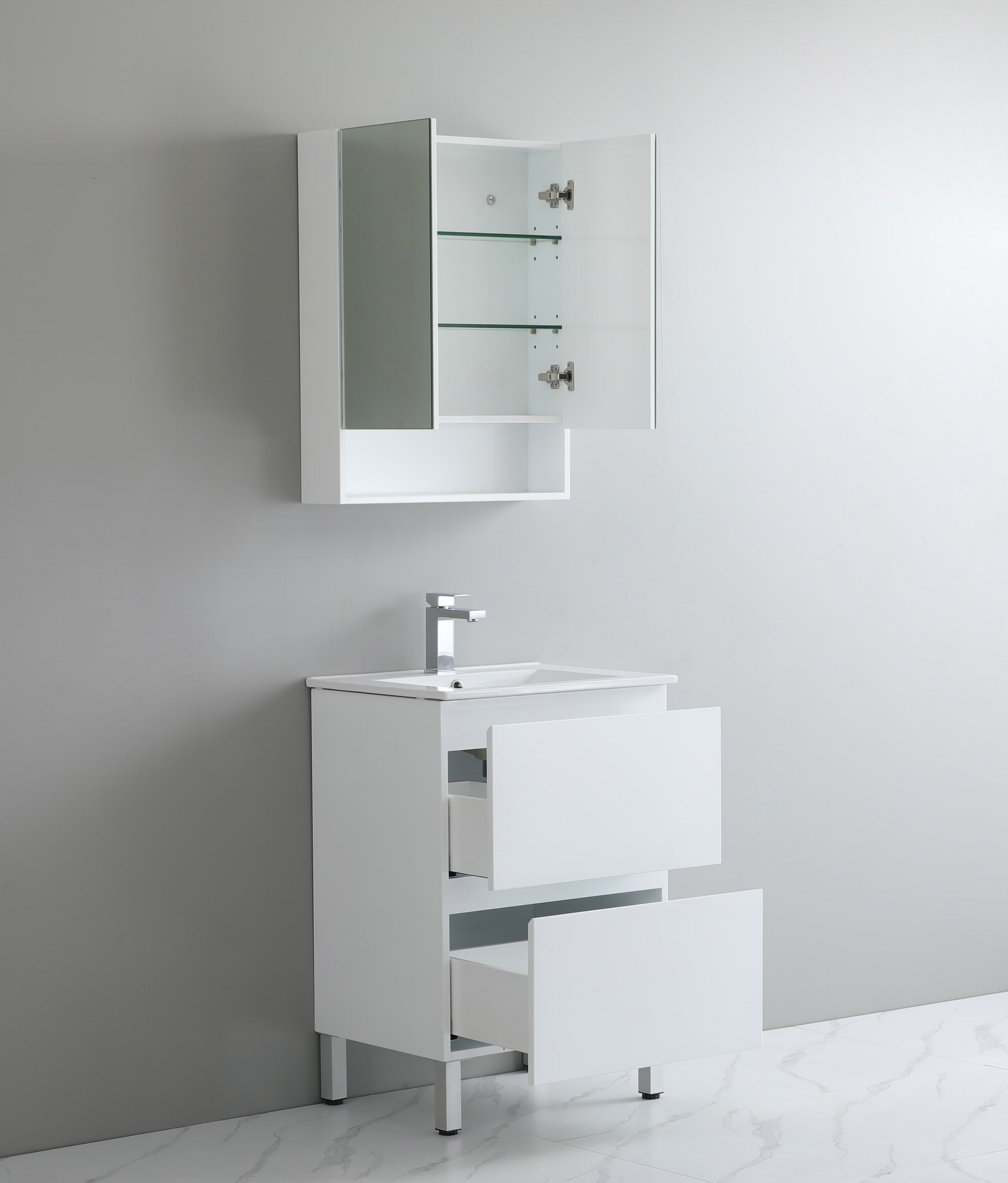 Fresh up your main bathroom or guest bath with this classic single vanity set. Its freestanding frame is made from solid wood with a natural, weathered finish for a French country look, and its elegant surface is crafted from cultured marble. The included undermount ceramic sink boasts a rectangular silhouette. This vanity comes with six drawers with metal, matte black handles that open to reveal space for washcloths, toothpaste, and hair ties. A soft-close door hides extra shelf space for hairdryers, while an open shelf is ideal for bath towels. Plus, this bathroom vanity has a chamfered water-retaining edge on the counter that prevents dripping on the floor.