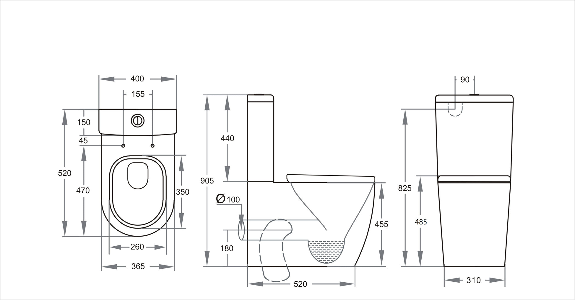 660*390*875mm Back to Wall Elvera Ambulant Rimless Toilet Suite LUX027 Trap Included